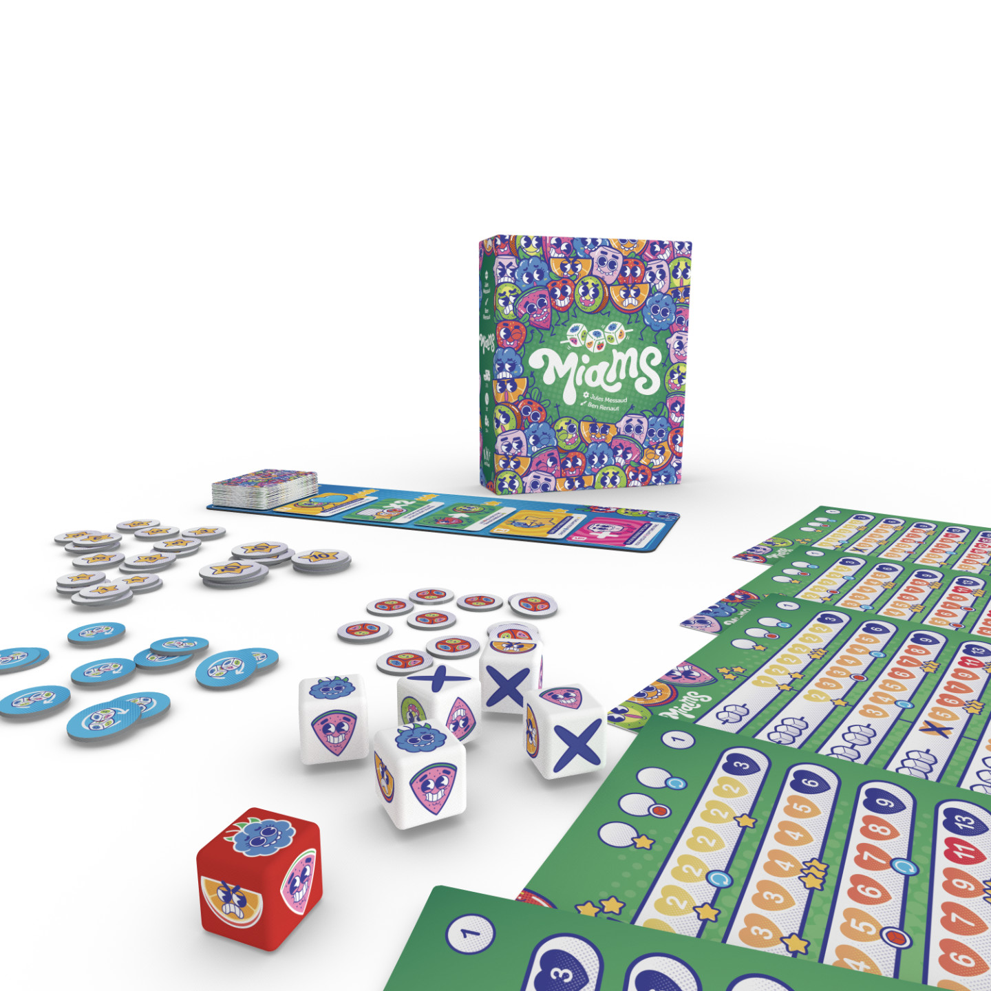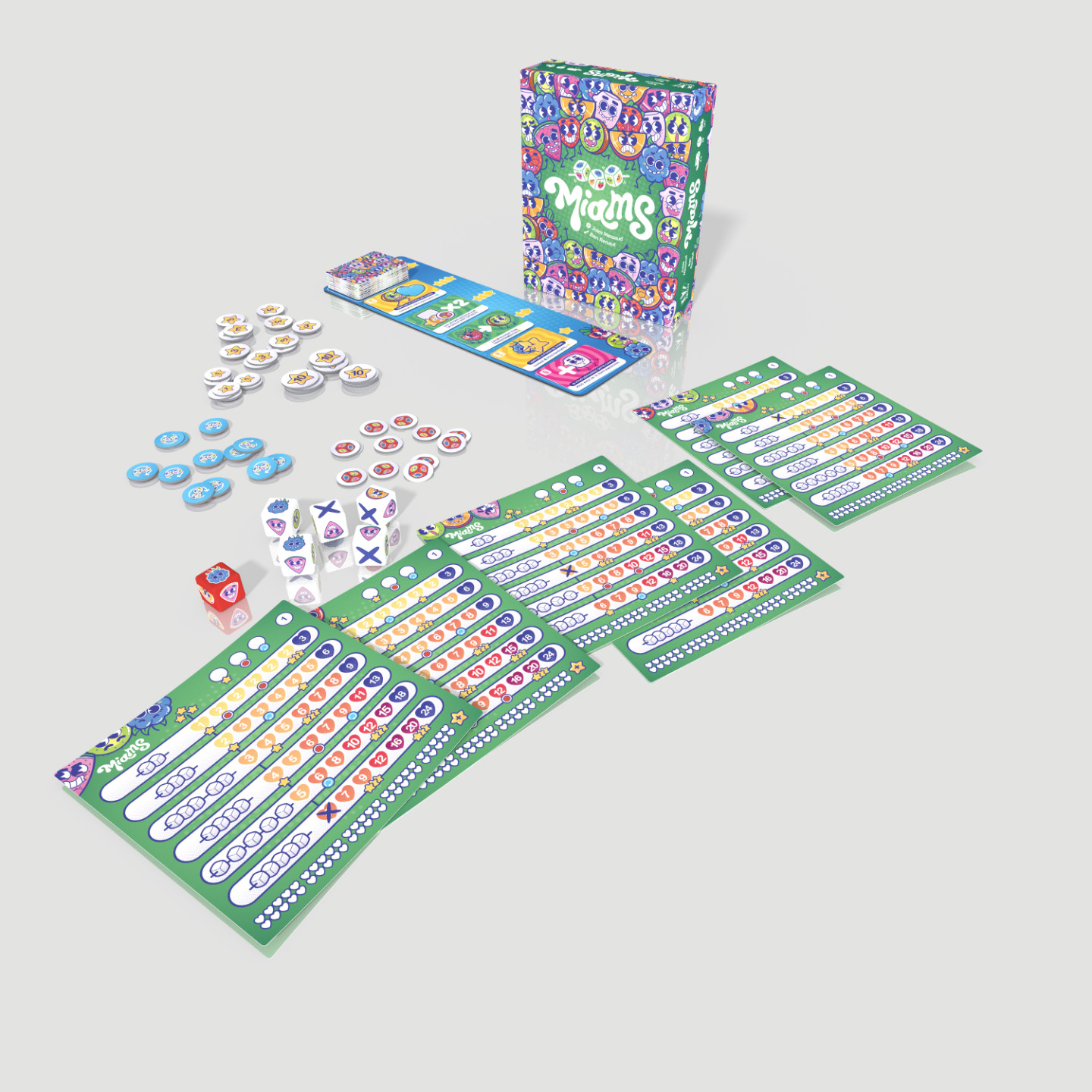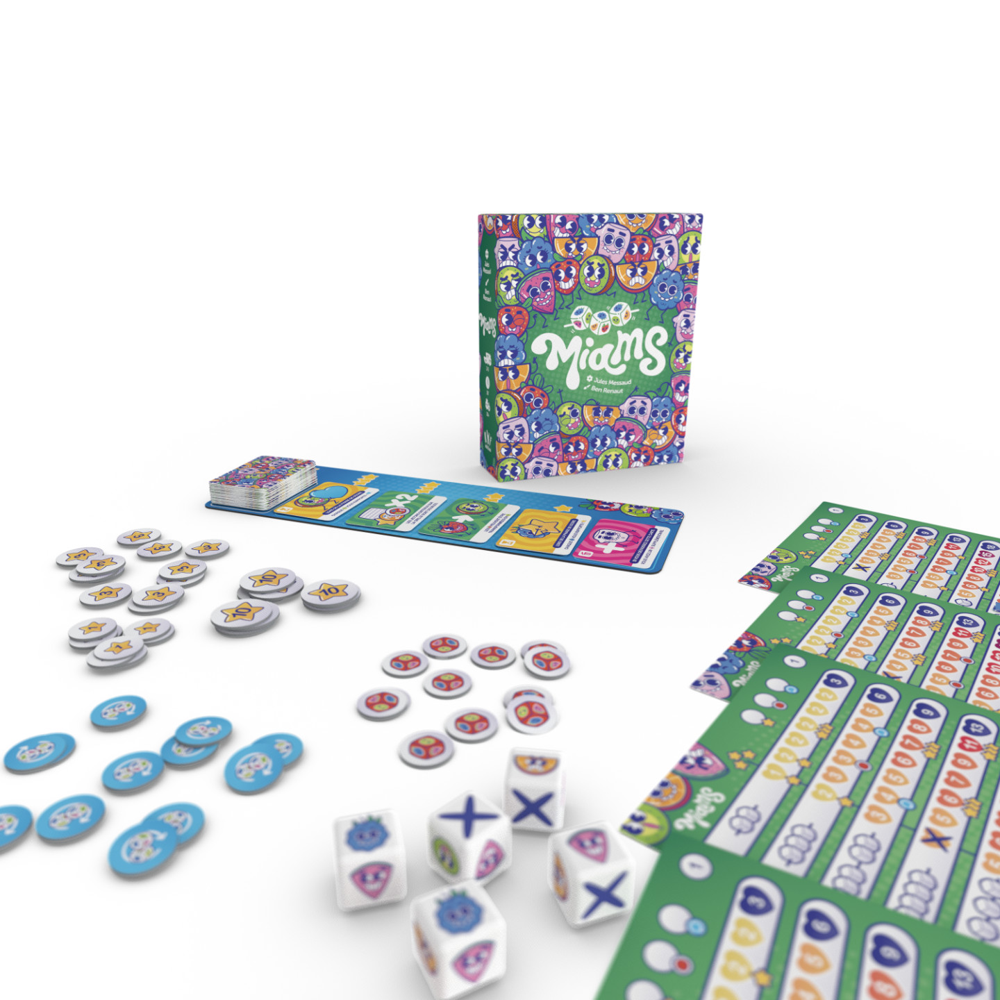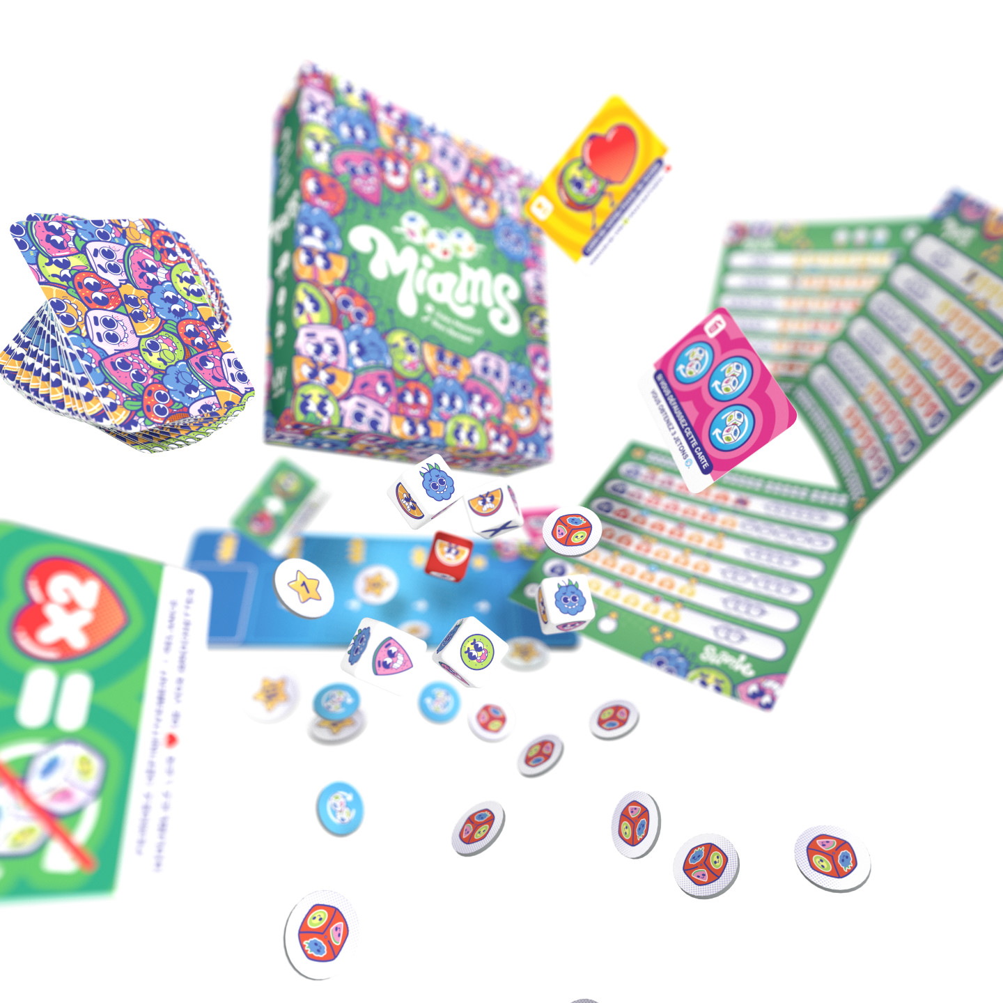 Si je vous parle de cela, c’est pour que vous compreniez qu’un jeu de Yam's, en 2025, était un projet qui me semblait un peu délicat à rendre sexy, tant il est devenu un classique un peu immuable. Bon sang que j’avais tort.Je viens de passer tout l’été à faire jouer des gens à Miams. Des grands, des petits, des joueurs, des non-joueurs, des amoureux de dés et des allergiques au hasard. Ma petite boîte sous le bras, je finissais par avoir l’impression de porter la bonne parole : « Et ils jouèrent tous à Miams, et ce fut bon. »